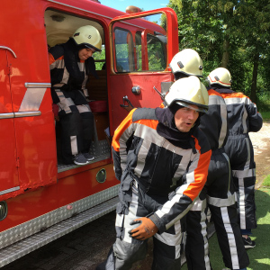Het werk van de brandweerman is concreet en fysiek. Gereedschappen pakken en handelen. Pomp water met een ouderwetse handpomp en kijk welk team het beste samenwerkt.