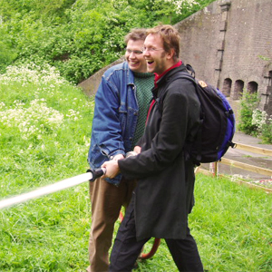 BrandweerSurvival is sportief van aard. Een beetje competitie maakt de vrijgezel scherp (of zenuwachtig..?). Wat dacht je van middeleeuws blussen met een ouderwetse handpomp. Twee emmertjes water halen, twee emmertjes pompen, de meisjes ...