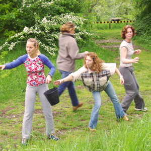Het ene moment heel sportief met 2 emmertjes water halen, 2 emmertjes pompen. Daarna een creatief onderdeel. Geschikt voor dames en heren.