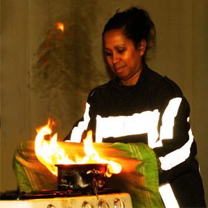 Tijdens een spectaculaire demonstratie wordt verteld hoe het ontstaat, op welke manier u het moet blussen en hoe je het kan voorkomen. Een stukje educatie welk door de demonstratie bij iedereen in het geheugen wordt gegrift. Ik kan jullie verzekeren, “dit vergeet je nooit meer!”.